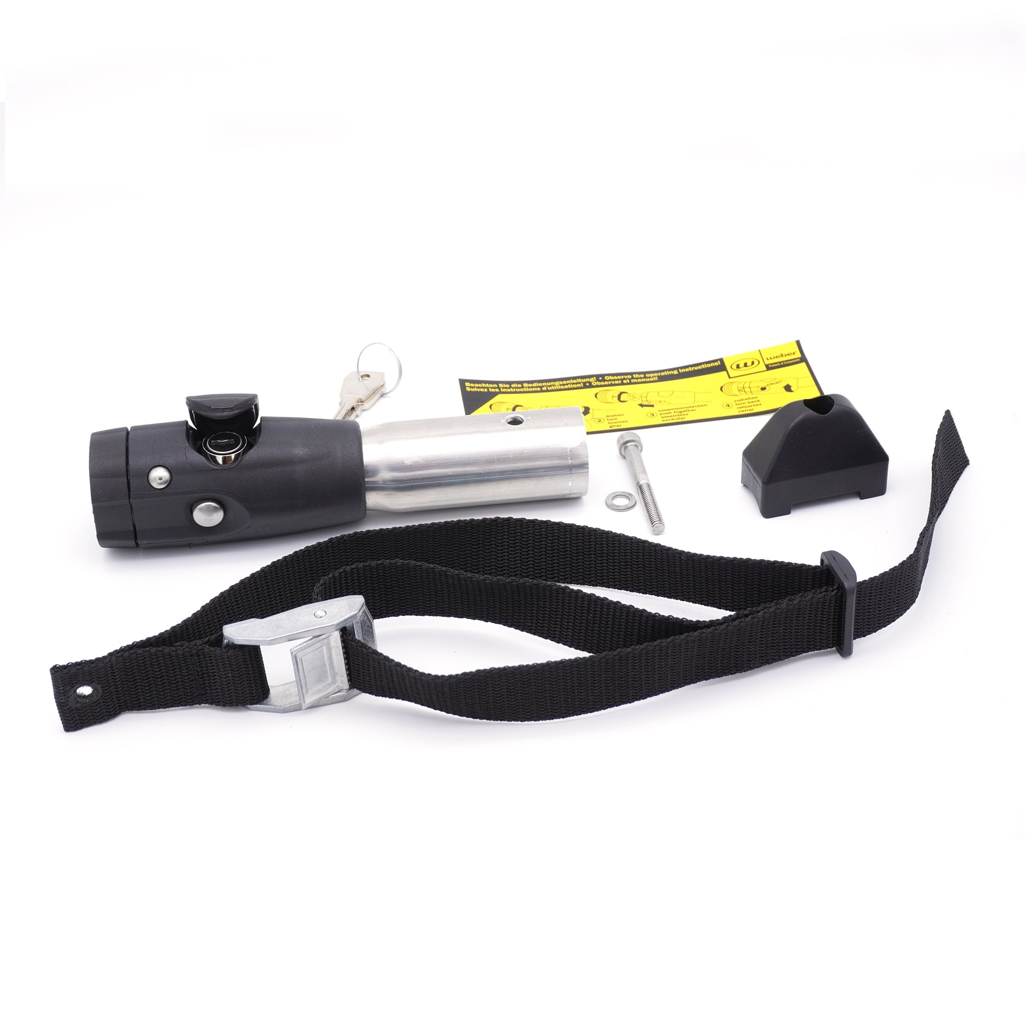 Weber Deichselanschluss für TAXXI Deichsel TAXXI goes Weber: Mit dem neuen Deichseladapter können unsere TAXXI Deichseln problemlos an bereits vorhandene Weberkupplungen montiert werden. Benötigt werden ein 4mm Inbus und 11mm Ring- /Maulschlüssel oder Stecknuss zum Lösen der vorhanden Aufnahme sowie ein 5mm Inbusschlüssel zum Anbringen des Weber Adapters and die vorhandene TAXXI Deichsel. Aus Sicherheitsgründen raten wir Ihnen grundsätzlich, die Deichselanschlüsse für den Anhänger von Ihrem Fachhändler montieren zu lassen. Lieferumfang: 1 Deichselanschluss, 1 Deichselfuß, 1 Fangband, 1 Schraube mit selbstsichernder Mutter, Hinweisaufkleber, 2 Schlüssel, Montageanleitung